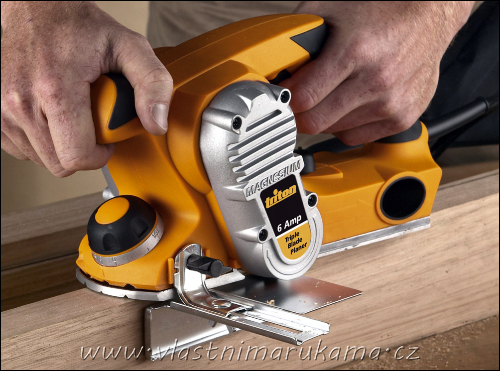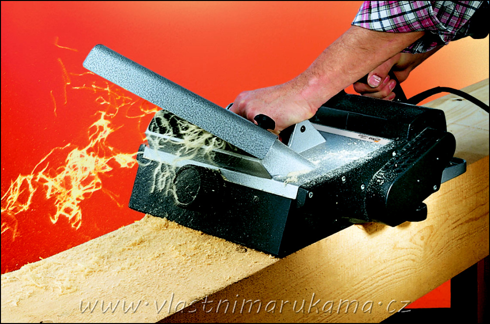 Výkonný hoblík má 900wattový motor, je odolný vůči přetížení a zaručuje udržení otáček hoblovací hlavy i při nastavené velké hloubce záběru. Pro dosažení precizních výsledků při hoblování, srovnávání, při vytváření polodrážek nebo srážení hran jsou hoblovací desky (pohyblivá i pevná) vyrobeny z hliníkové slitiny a následně přefrézovány. Otočným předním držadlem měníme hloubku záběru plynule od 0-3 mm. Nastavená hodnotu úběru se dá snadno odečíst na dobře čitelné stupnici s jemným dělením po jedné desetině milimetru. U hoblíku lze usměrnit odvod vylétávajících hoblin pomocí klapky doleva nebo doprava. Pro zvýšení bezpečnosti je spínač je vybaven pojistkou proti nechtěnému sepnutí stroje. Vysokou spolehlivost a životnost hoblíku zaručuje převod silným řemenem a kovovou řemenicí. Přesná drážka tvaru písmena „V“ v přední pohyblivé desce hoblíku umožní pohotové a přesné srážení hran. Tvrdokovové otočné hoblovací nože zajišťují dlouhou životnost i při hoblování tvrdého suchého dřeva a deskového materiálu.