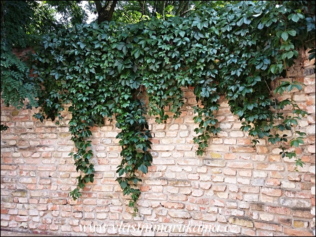 Cihlová zeď v zahradě, foto med