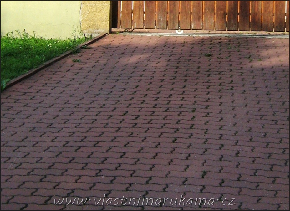 - Dlažbu začneme pokládat od okraje. Na podloží zásadně nevstupujeme. Další tvarovky pokládáme z již vydlážděné plochy. Mezi jednotlivými tvarovkami necháváme malé mezery.