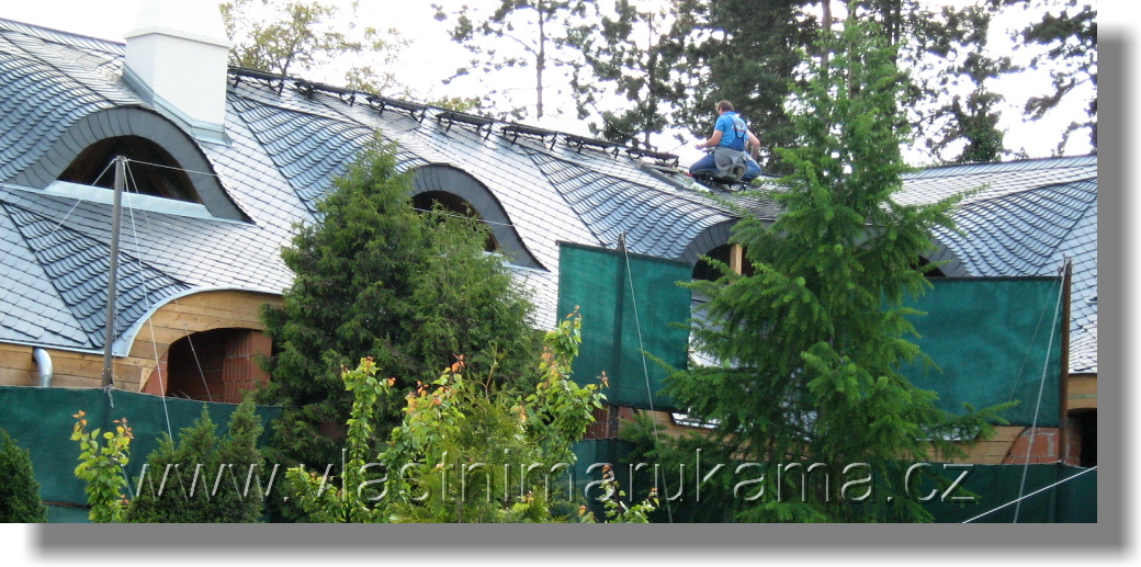 - Nevyplňujeme mezeru mezi oběma křídly střechy u hřebene maltou. Tato škvíra totiž zajišťuje přístup vzduchu k dřevěnému hřebeni střechy a tak umožňuje jeho dokonalé vysychání.