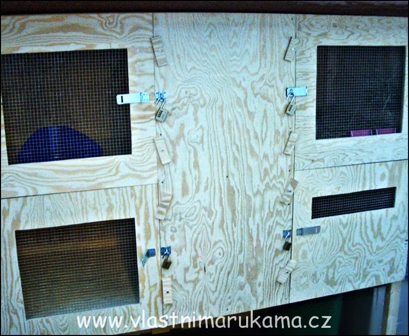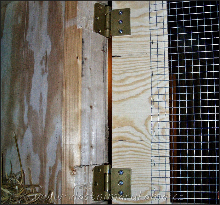 - Nakonec zabezpečíme dvířka zástrčkou, dřevěnou záklopkou nebo obrtlíkem, případně na ně připevníme na ochranu před zloději visací zámek.