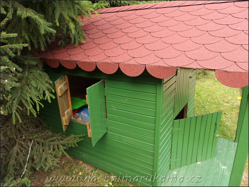Dřevěnou konstrukce dobře ošetříme proti hnilobě a zabezpečíme proti povětrnostním vlivům. Použijeme například venkovní lazuru. Uvnitř domku můžeme ještě vyrobit stolek a lavice na sezení, poličku na hračky, záclonky na okna apod. Hotový domek pro děti pravidelně kontrolujeme a včas provádíme nezbytné opravy, aby byl v dobrém stavu a zdravotně nezávadný.